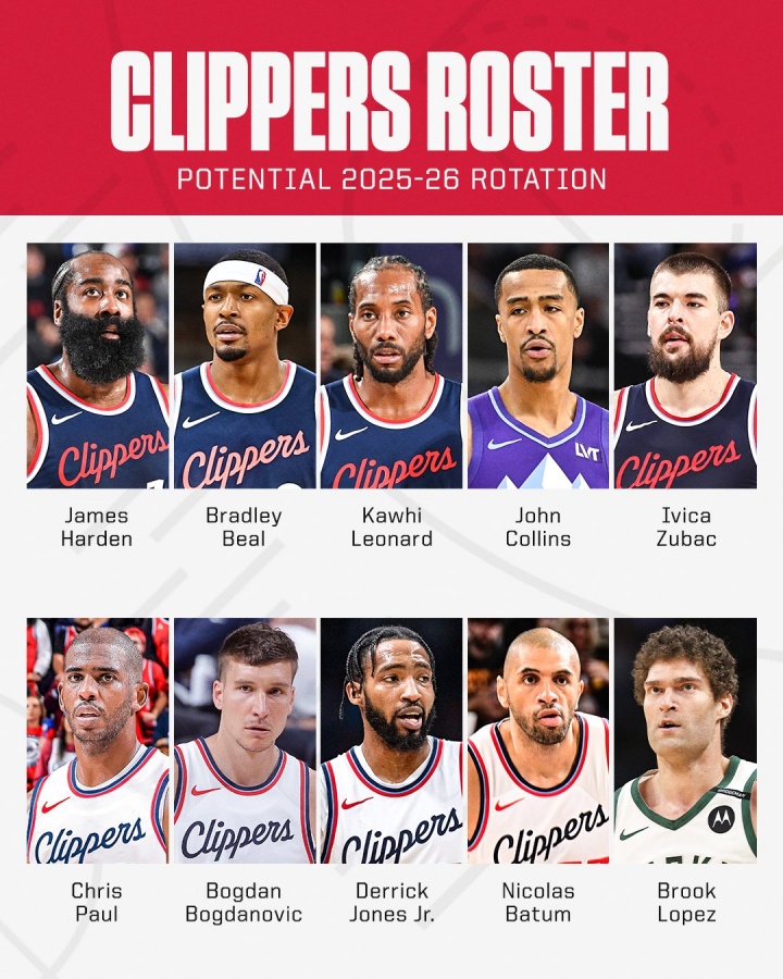 豪华战舰快船新阵容:豪华首发+保罗/大洛引领替补席