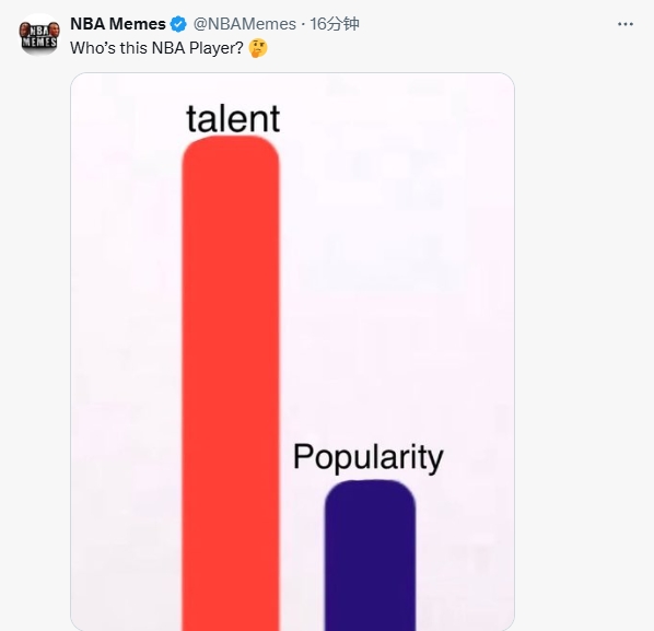 05月31日讯 今日媒体NBA Memes更新了社交媒体,向球迷发问:“谁是天赋和人气最不匹配的球员。”